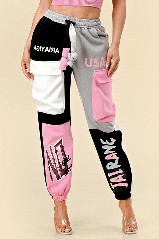 The oversized jumbo drawstring is a standout detail, adding a bold, fashion-forward touch while allowing you to cinch the waist just how you like it. Finished with eye-catching graphic details and color-block design, these joggers are made to be seen.
